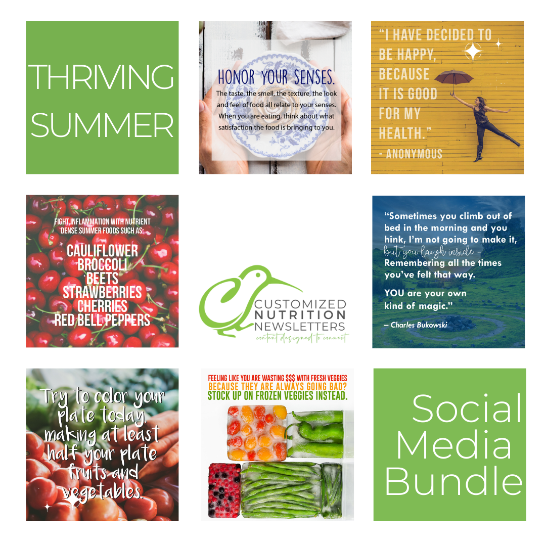 Designed for nutrition, health, and wellness experts who are looking to elevate their work by providing educational and inspirational material to your community. Creating top-of-mind awareness for YOU and your business.